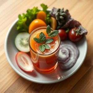 A nutrient-packed vegetable juice that's both refreshing and healthy. Great for a morning boost or afternoon pick-me-up.