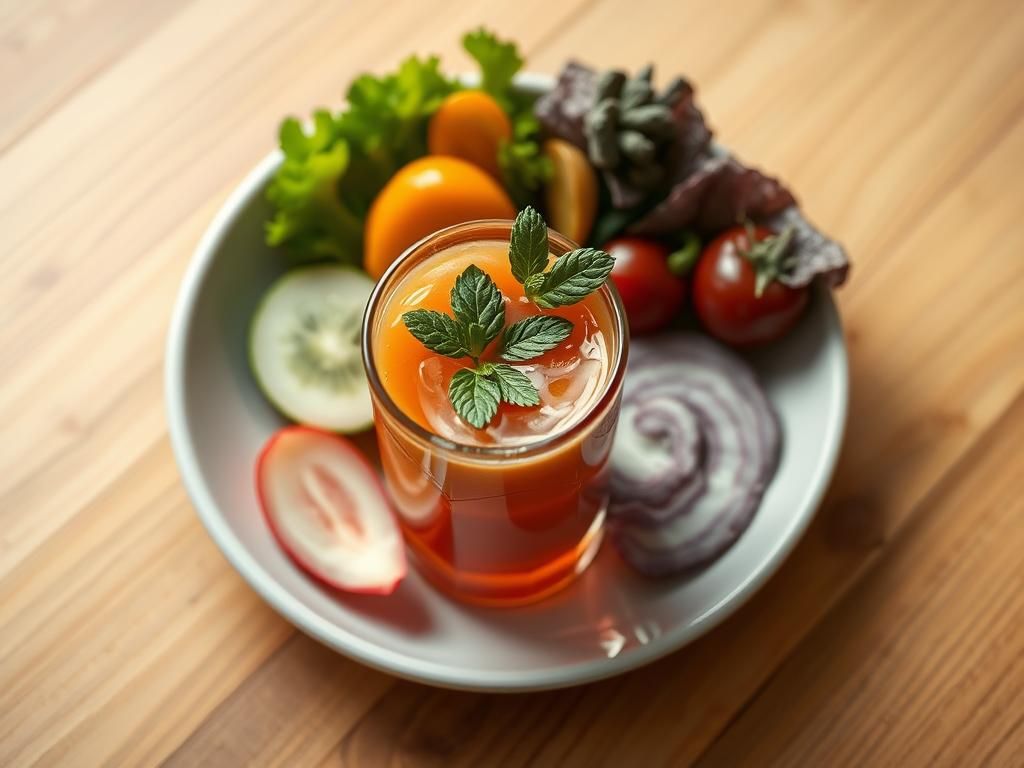 A nutrient-packed vegetable juice that's both refreshing and healthy. Great for a morning boost or afternoon pick-me-up.